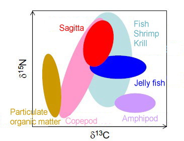 Above schematic shows the food web structure of the research area. This result contributed to develop a deep-sea ecosystem model. |