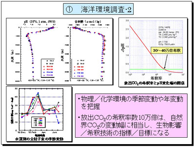 すなわち、「放出CO2の希釈率数10万倍とは、自然界CO2の変動幅に相当し、この希釈率が、生物影響の指標、あるいは希釈技術の目標となる」と推定されました。