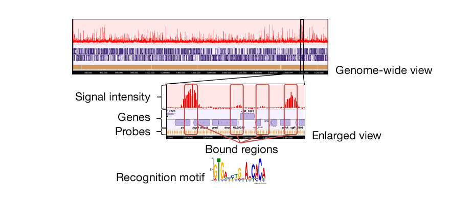 Various types of transcription factors recognize specific DNA sequences and their activity is controlled in their specific manners. The overlaps and the interactions between the regulatory modules (signal for regulation - transcription factor - target gene) form a complicated network. It is thought that transcription factors act as sensors for various intra-/extra-environmental signals which are integrated through the microbial gene regulatory network into the cellular response and adaptation to fluctuating environmental conditions.